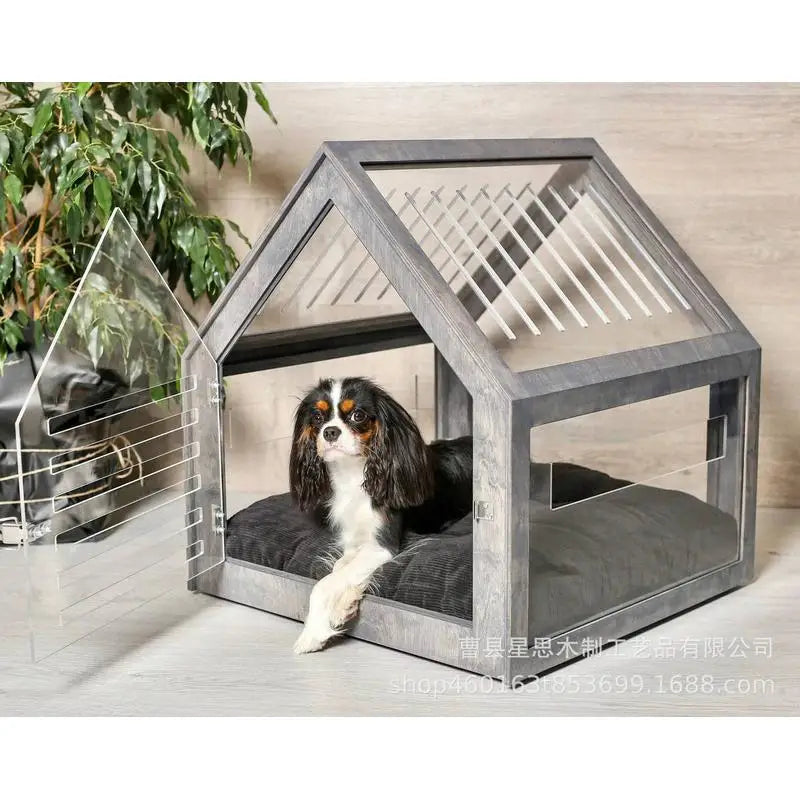 A stylish and sturdy wooden sanctuary designed for ultimate comfort and security. This weather-resistant house provides a cozy resting spot for your furry friend throughout the year.